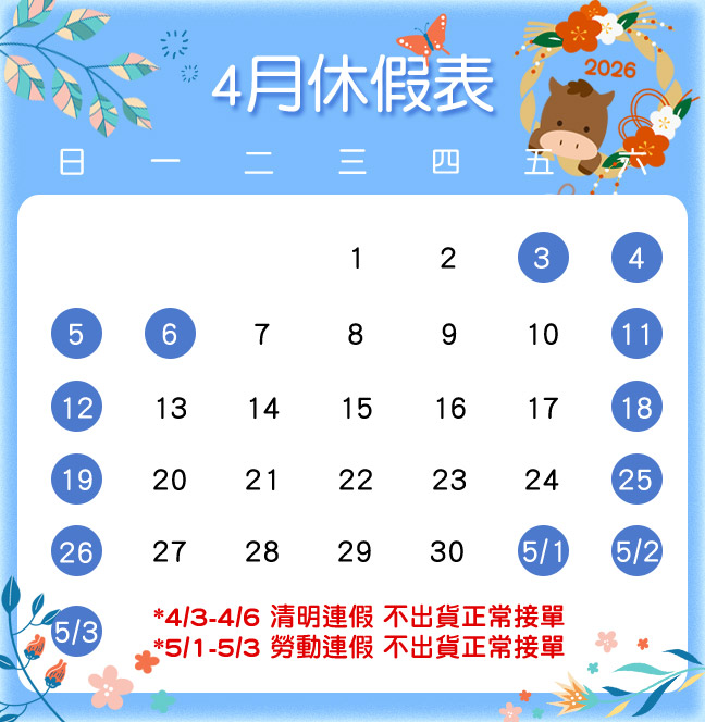 2026年4月休假表
